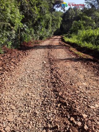 El equipo vial de la Municipalidad de El Soberbio trabaja en la mejora y entoscado de caminos en Picada Lange (Colonia Paraíso.