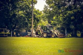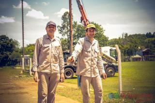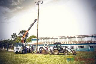 Funcionarios de distintas áreas de la Municipalidad de El Soberbio iniciaron los trabajos de relocalización de las torres de iluminación en la cancha de futbol de la localidad.