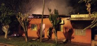 La construcción sufrió daños materiales de consideración, como así la pérdida de todo el mobiliario existente, además de la moto que había dejado alló una prima de la mujer y la otra del dueño de casa.
