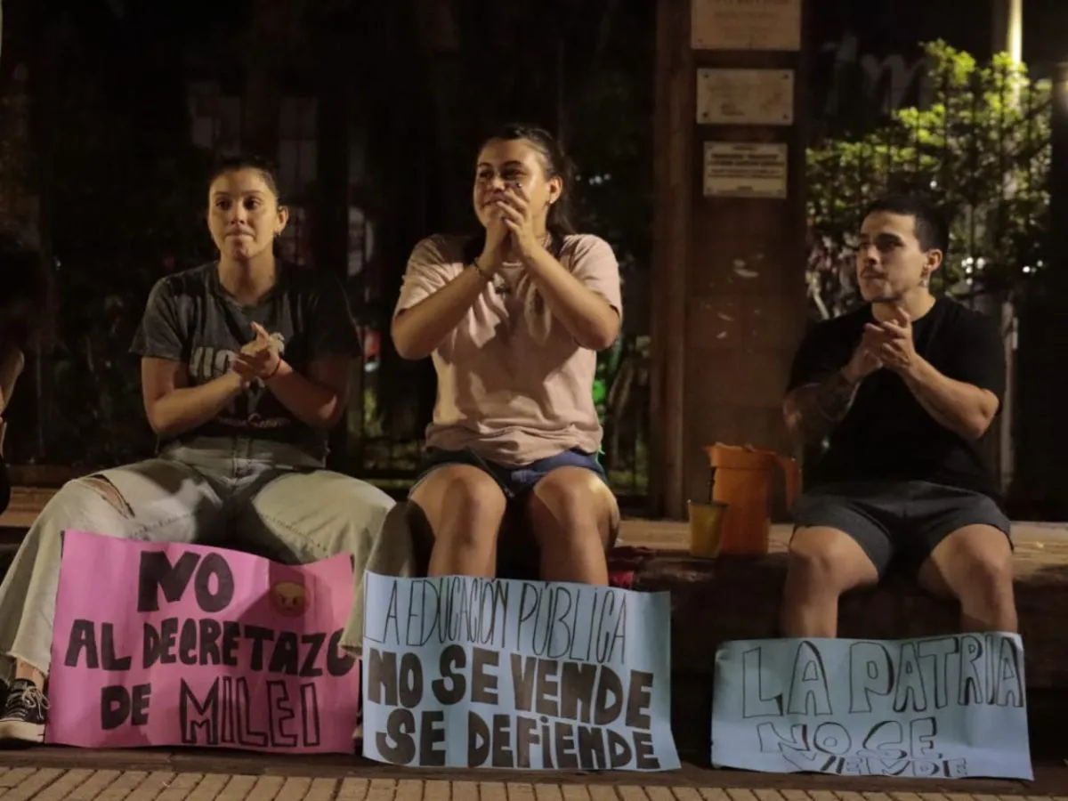 Cerca de las 21, los manifestantes comenzaron a congregarse. "Por una Navidad sin hambre ni represión", "No al decretazo de Milei", "La Patria no se vende", rezaban las pancartas.