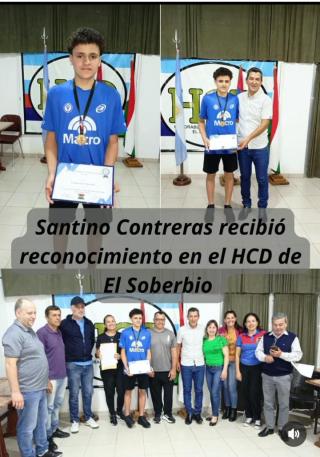 El Honorable Concejo Deliberante de El Soberbio realizó, en la sesión de este jueves 26 de septiembre, un reconocimiento especial al deportista local Santino Contreras quien se coronó campeón del torneo Panamericano de Padel en categoría Sub-14, el último fin de semana en la ciudad mexicana de Aguascalientes.