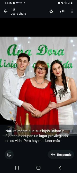 -Naruralmente que sus hijos Brihan y Florencia ocupan un lugar provilegiado en su vida. Pero hay muchas otras personas que laten muy fuerte en su corazón y que exceden la profesión, como Rita Zappani, como la Supervisora Norma Escobar, quien coincidió con su década dorada en la Dirección y le dedicó sensibles palabras.