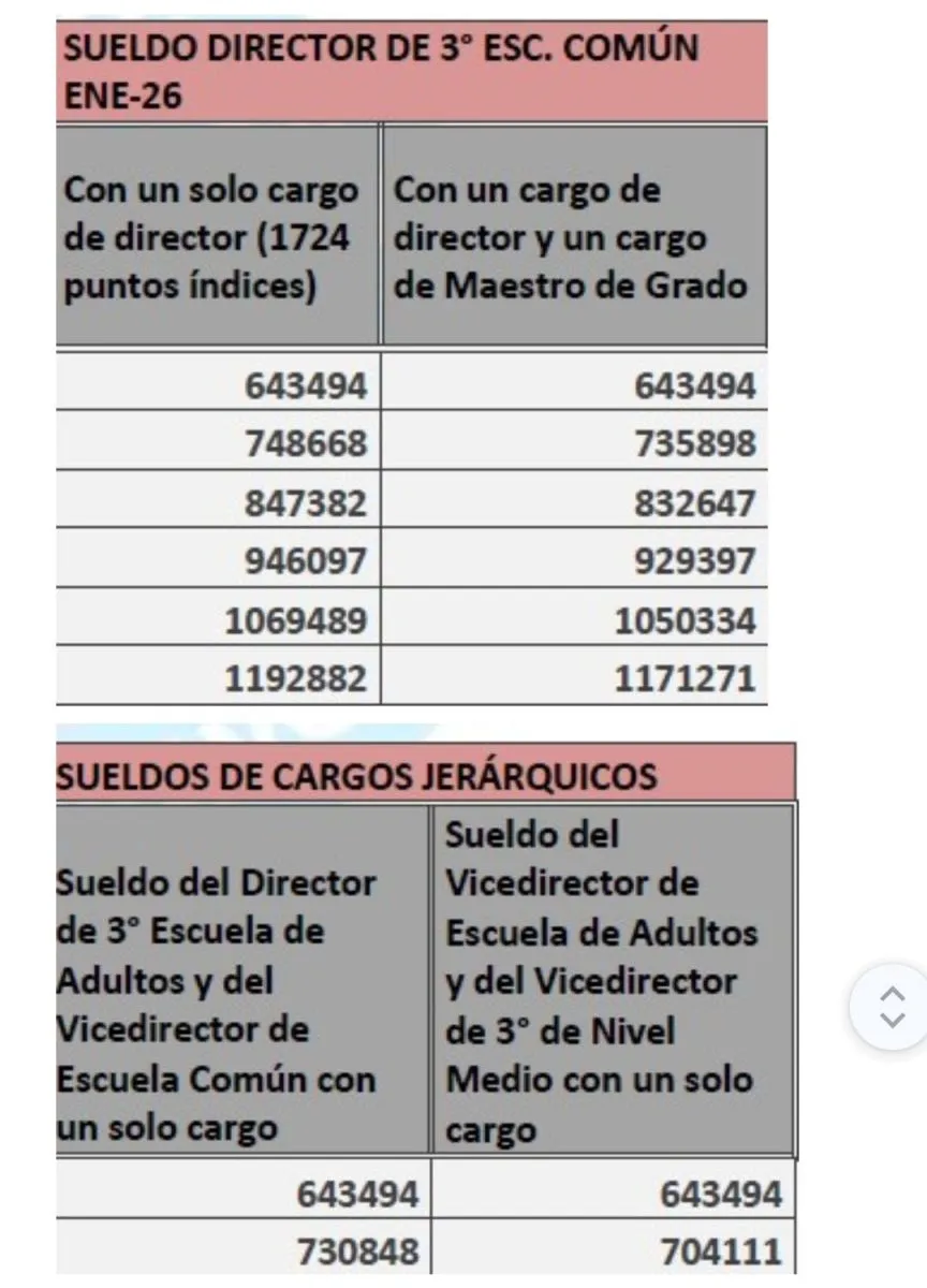 Como ejemplo de la gravedad de la situación, indicaron que los haberes de directores de escuela —aun siendo cargos jerárquicos— no llegan a cubrir ni la mitad de la canasta básica, pese a la responsabilidad legal que deben asumir. En los escalafones inferiores, la situación es aún más crítica.